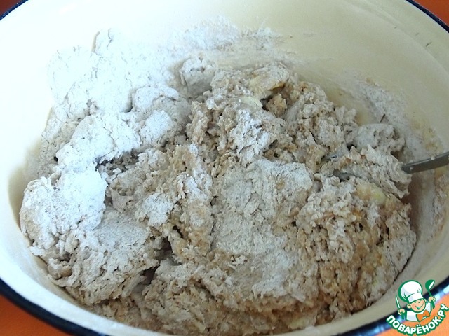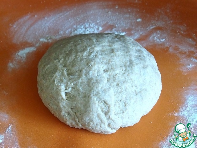 Вымесить на столе тесто, возможно, придется добавить чуточку муки, но только совсем немного. Не "забивать" тесто лишней мукой, оно должно быть мягким и эластичным.