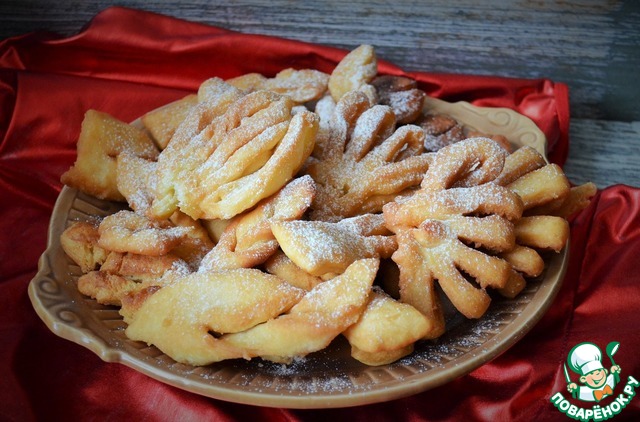 Способов приготовления хвороста множество: пресный на воде, на яйцах, на прокисшем молоке или сметане, дрожжевой и т. д. Хочу предложить очередной рецепт, но с интересной формовкой. Идею увидела в инете, авторам огромное спасибо."Хрустики" лакомство из детства, получились нежные, хрустящие, тающие во рту.