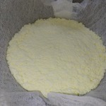 Дуршлаг застелите марлей сложенной в несколько слоев и аккуратно выложите творог, хорошо придавите ложкой формируя форму творога. Оставьте стоять на столе на 1 час, чтобы вышла сыворотка.