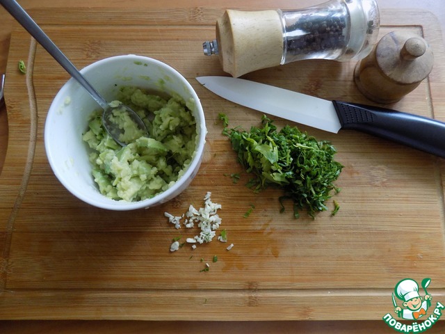 Чеснок и петрушку мелко порубила. Отправила к авокадо и соединила. Конечно же можно всё разбить блендером. Для меня мой способ вкуснее и красивее будет смотреться на бутербродах.