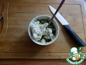 Добавляем творожный сыр. Соединяем всё и по желанию солим и перчим. Я только поперчила. Мне достаточно было лимонного сока.