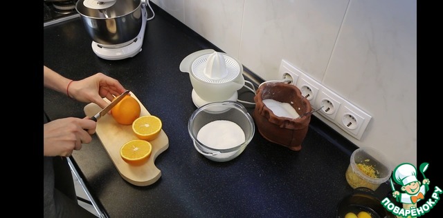 Апельсины моем, вытираем, разрезаем пополам и выжимаем сок.