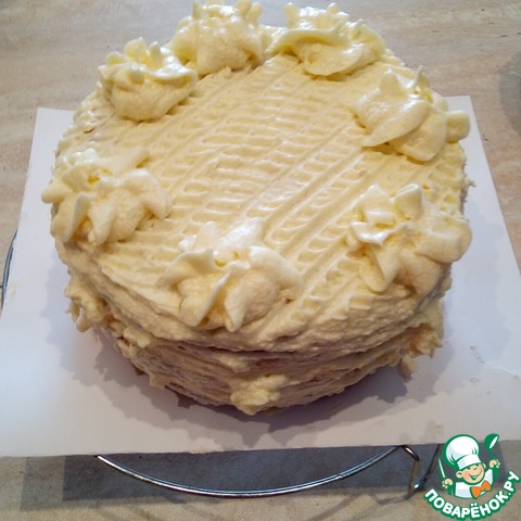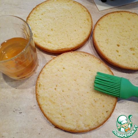 Для пропитки все смешать и пропитать коржи. Средний корж можно пропитать с двух сторон. -