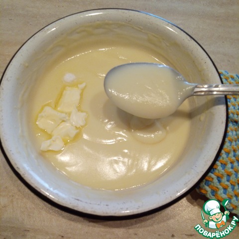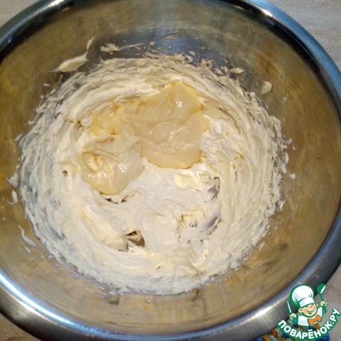Мягкое сливочное масло слегка взбить до побеления. Все составляющие крема должны быть одинаковой температуры, никаких резких перепадов!