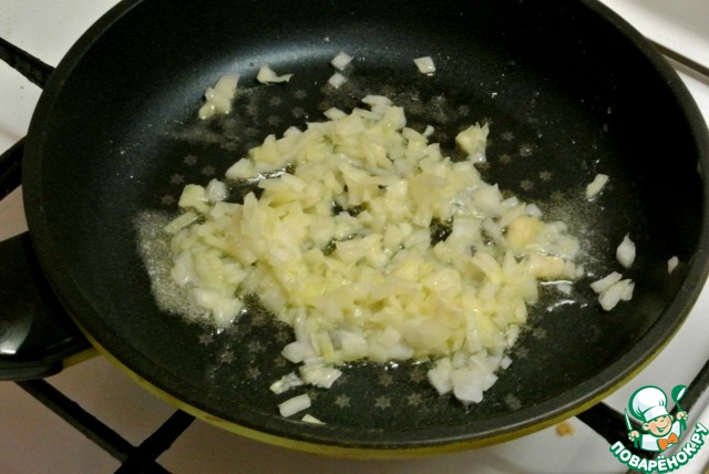 Лук мелко нарезать, спассеровть в 30 грамм сливочного масла до мягкости.