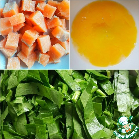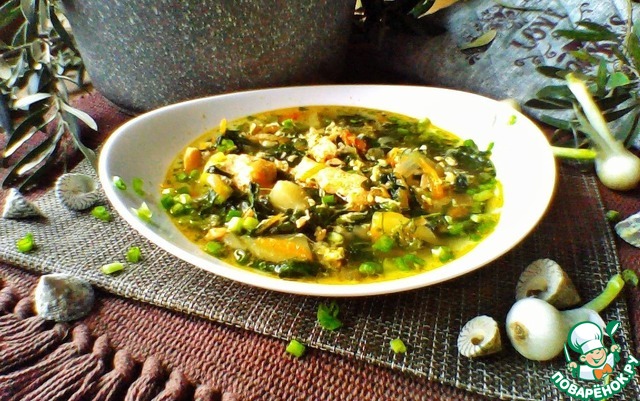 Сегодня готовила, но вместо рыбы молоки лососевых рыб, вместо картошки - зелёная гречка. Щавеля немного было. Но сама идея просто отличная, на заметку