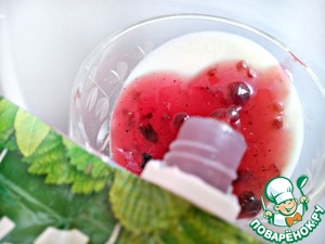 Креманки с застывшими сливками достаем из холодильника и аккуратно укладываем поверх сливок слой джема. Количество джема берите по своему вкусу.