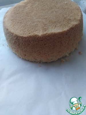 Вот такой бисквит получился, вынимаем его из формы и даём полностью остыть. В идеале бисквиту нужно полежать 10 часов, как бы дозреть, тогда он не будет крошиться и хорошо резаться. Я оставляла на ночь. Но если нет времени столько ждать, то нужно дать хотя бы полностью остыть.