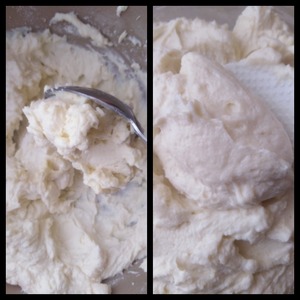 Бисквит разрезать на 3 части любым удобным для вас способом. Делаем крем. Творог взбить вместе с сахарной пудрой и кокосовой стружкой. Размягченое сливочное масло взбить миксером минут 5, затем не останавливаясь взбивать, добавлять сгущёнку, взбивать до образования пышной массы.