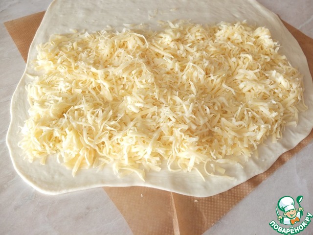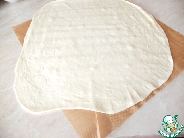Т. к. тесто надо будет раскатать, как можно тоньше, я делала это сразу на пергаменте. Дополнительно присыпать мукой не понадобилось.