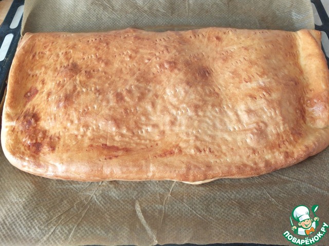 Накрываем второй частью, тщательно защипываем края и снова раскатываем, как можно тоньше.