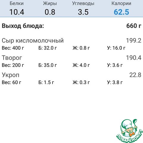 На выходе получая нежная творожная намазка общим весом 660 грамм. На сто грамм продукта всего лишь 62.5 калорий, 10.4 белки, 0.8 жиры, 3.5 углеводы и много наслаждения. 😀
