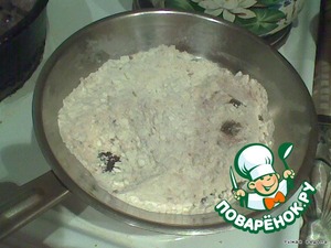 Муку обжариваем до бежевого цвета на сухой сковороде.