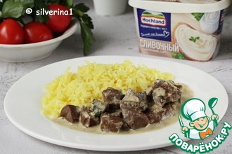 Заливаем печень соусом, постоянно помешивая. Соус сразу загустеет!!! Не прозевайте!!! Нужно сразу снять с огня.