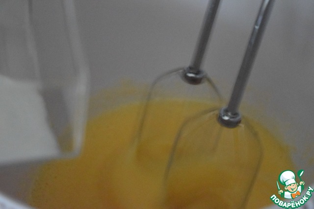 Яйца и сахар взбить до пены - минут 5.