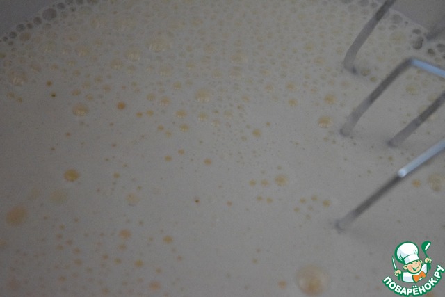 Добавить растительное масло и молоко, продолжая взбивать.