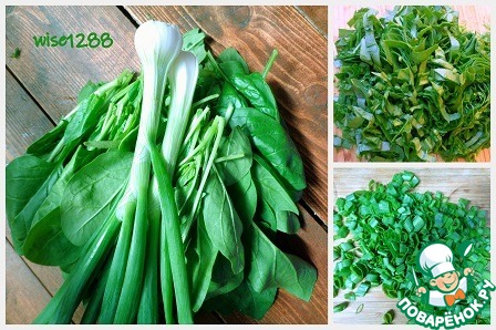 • Подготовить листья шпината, зеленый лук (промыть просушить). Зеленый лук и шпинат порезать.