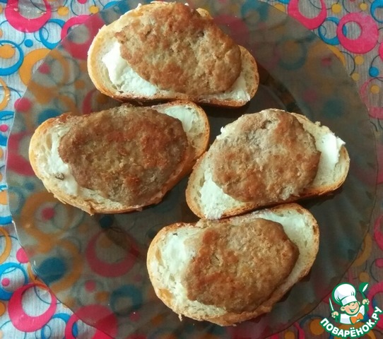На хлеб выложить котлеты. Можно также вместо котлет взять отбивные, колбасу вареную или любительскую.