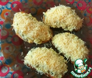 Поставить в разогретую до 200 градусов духовку на 7 минут, до расплавления сыра.