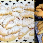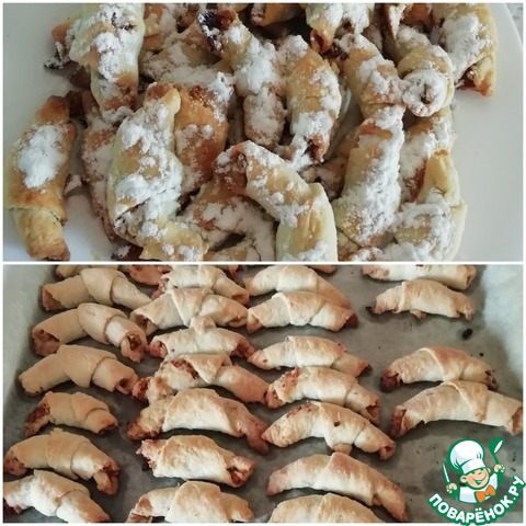 Получилось 33 рогаличка на один - два укуса. На остывшие, посыпала сахарную пудру.