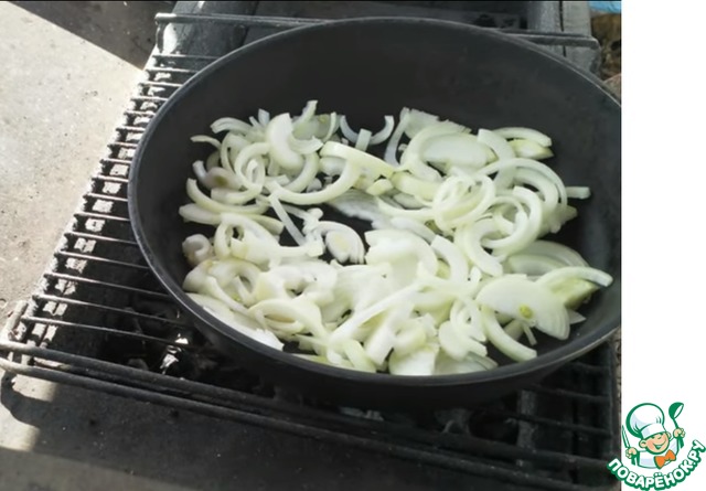 Отбили свинину и приступаем к жарке лука