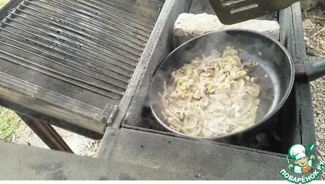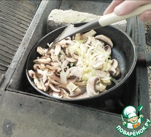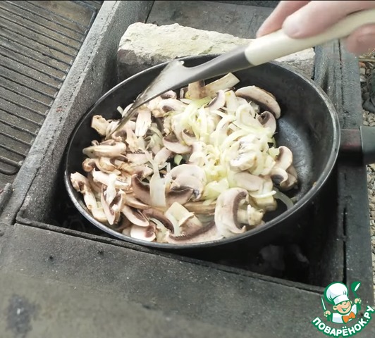 Выкладываем грибы с луком