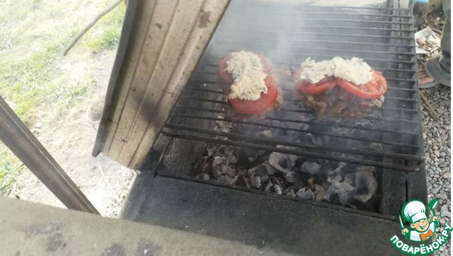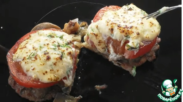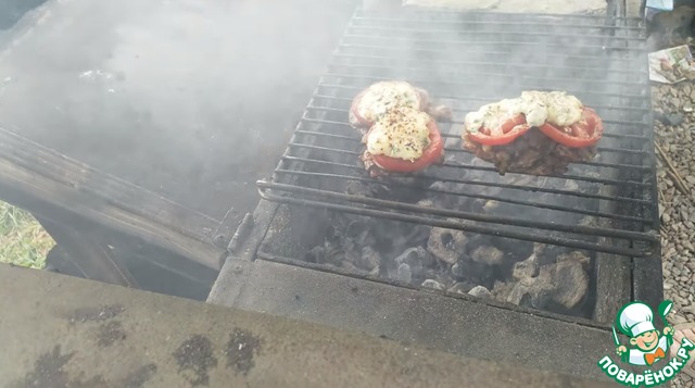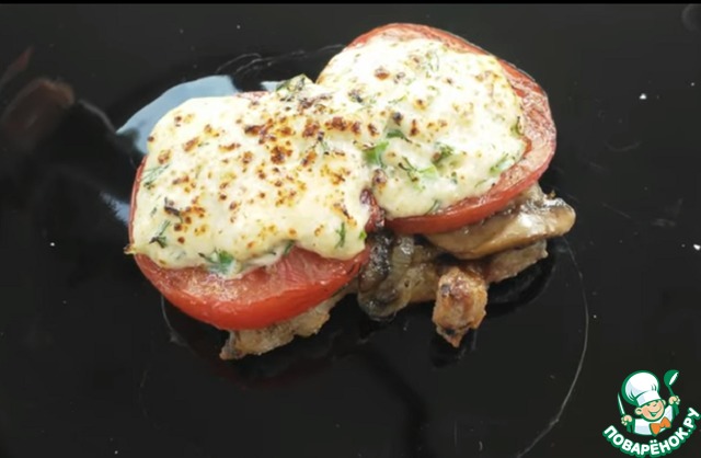 Отбивные с грибами, сыром на гриле