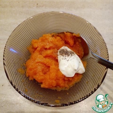 • Морковь очистить и превратить в пюре удобным для вас способом. Я воспользовалась кофемолкой.