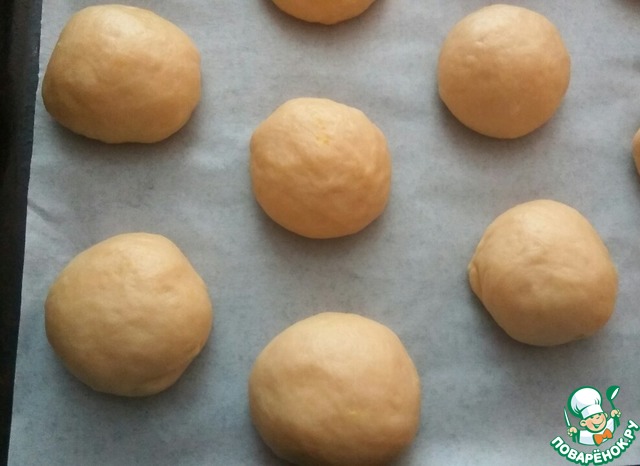 Подошедшее тесто обмять и разделить на 12 частей. Скатать колобки.