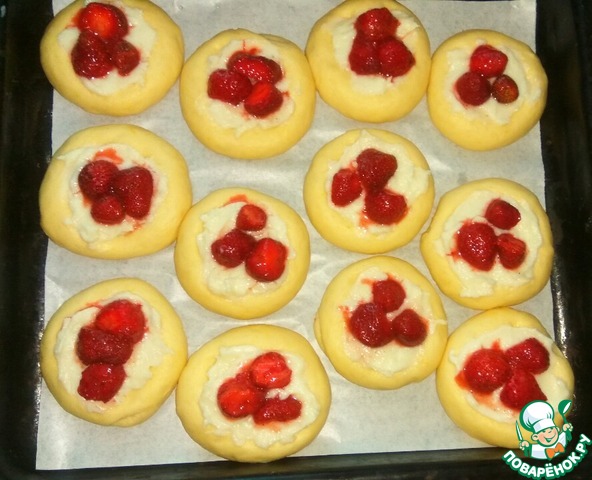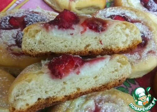 Предлагаю испечь невероятно вкусные булочки с приятной кислинкой клубники, с нежным ванильным пудингом и мягким, воздушным тестом.