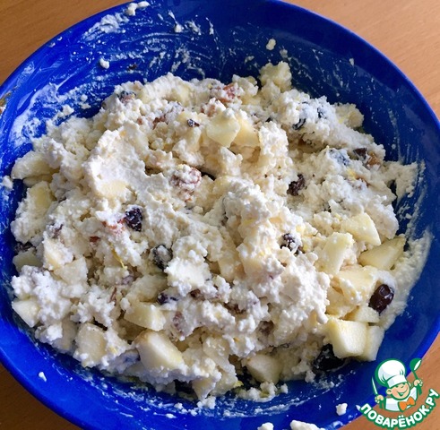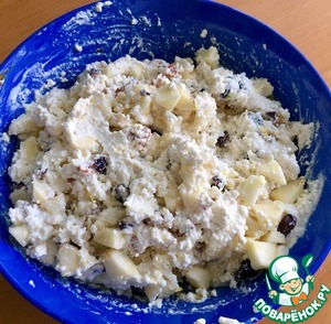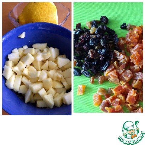 Яблоки почистить, нарезать мелким кубиком, сбрызнуть лимоном. Изюм вымыть, обсушить бумажным полотенцем.