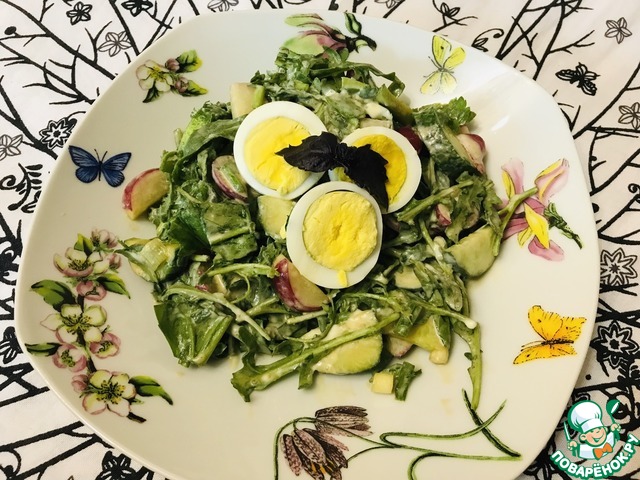 Когда, как не сейчас можно наесться зелёных витаминов? А, чтобы салат был посытнее, добавим в него яйцо.