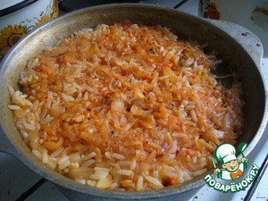 После закипания добавить лавровый лист. Тушить до готовности риса (примерно 20 мин.).