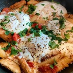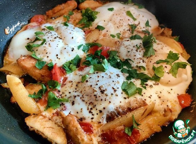 3. Выливаем взбитые яйца, накрываем крышкой на 4-5 мин.