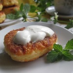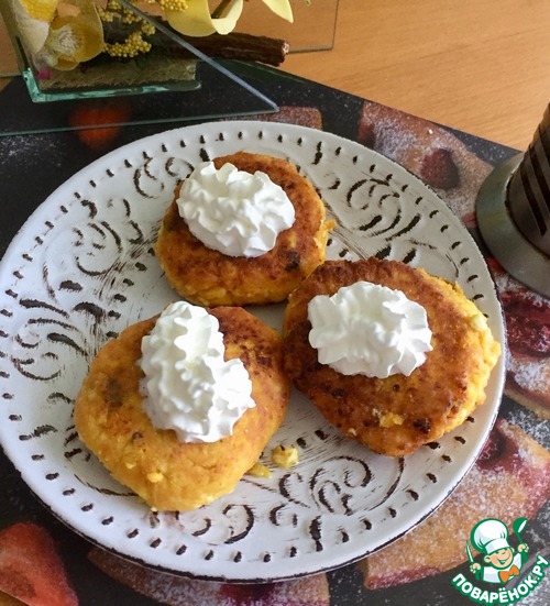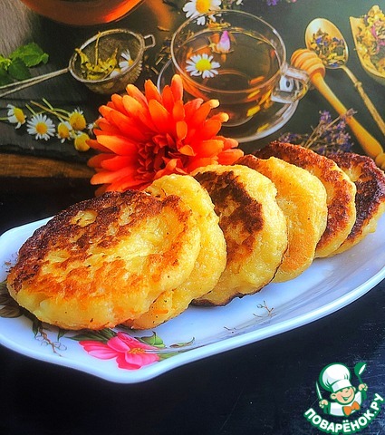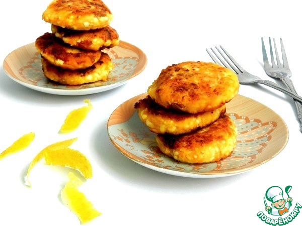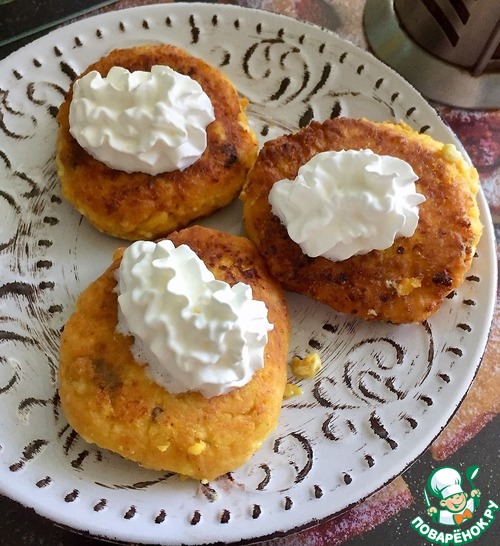 Добавить манку и муку. Оставить минут на 15. После того, обваляв в муке, на несильном огне обжарить с 2-х сторон.