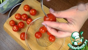 Помидоры черри более плотные, поэтому беру именно их. Протыкаю вилкой в 2-х-3-х местах.
