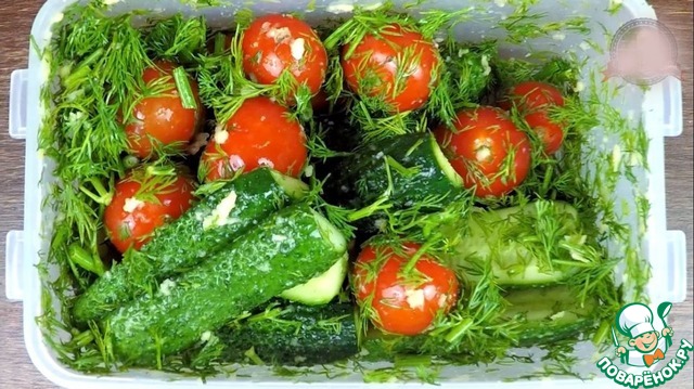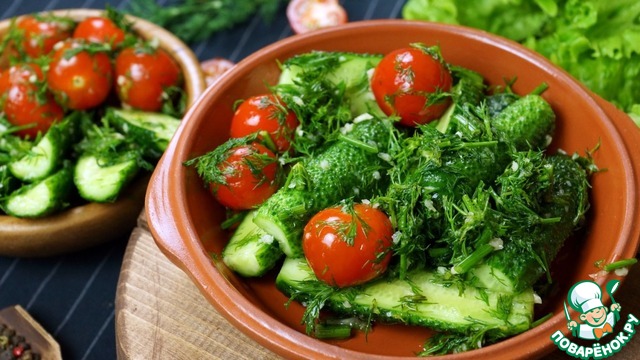 Как приготовить малосольные огурцы и помидоры, сделав при этом их хрустящими и вкусными?! Готовится такое блюдо быстро и с минимум ингредиентов. Поможет разнообразить дешево и сердито любые шашлычные посиделки. Результат вкуса этой закуски настолько нам нравится, что мы решили поделиться им с вами