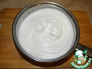 Охлажденные белки взбиваем с щепоткой соли до пиков