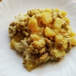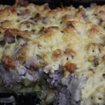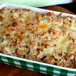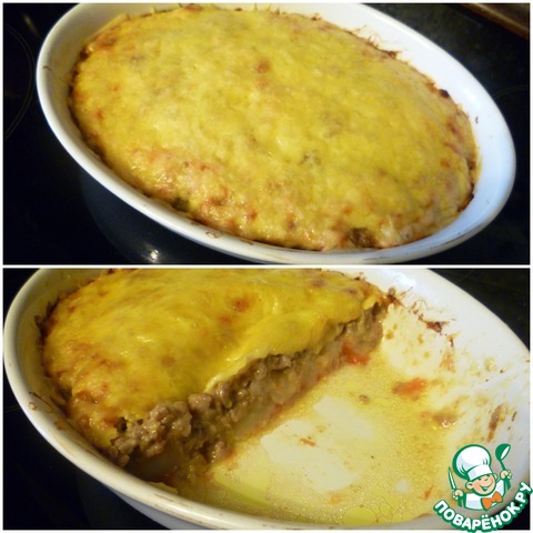 Когда-то исполнял похожий рецепт, но с одним отличием: картофель натирал на крупной тёрке и его не надо было обжаривать. Тоже отлично запёкся.
