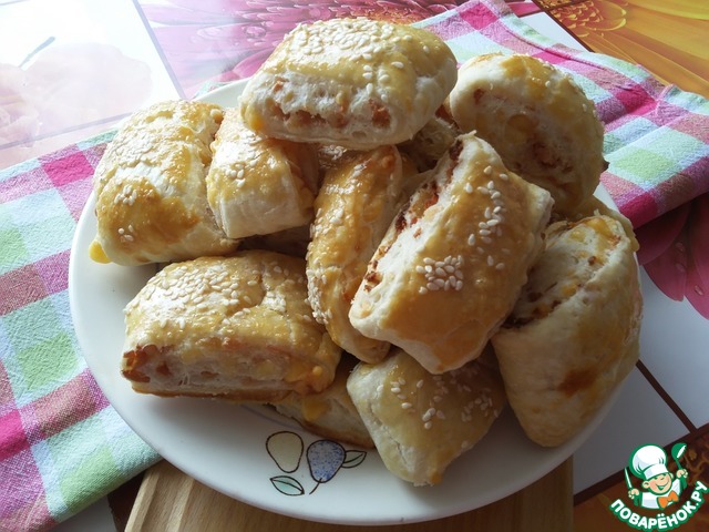 Если у вас намечается просмотр фильма или футбола в кругу семьи или просто встреча с любимыми друзьями, то эта выпечка для вас! Предлагаю приготовить закусочные мини-слойки с колбасой и сыром. Делать их легко и быстро, получаются очень вкусными, ароматными и оригинальными. Все будут просто в восторге от такого перекуса: готовится он за минуты, а съедается еще быстрее)).