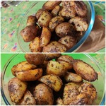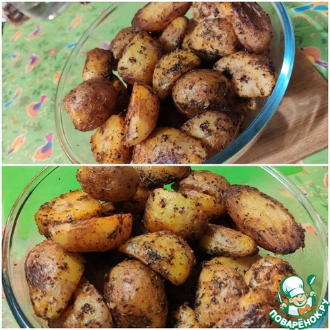 Большую часть картофеля я выложила на противень с пергаментом и отправила в духовку на 60 минут при 200-220 градусах.