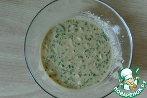 Всыпать тертый сыр и нарезанный зеленый лук.