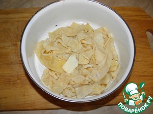 Добавляем в лапшу сливочное масло и перемешиваем