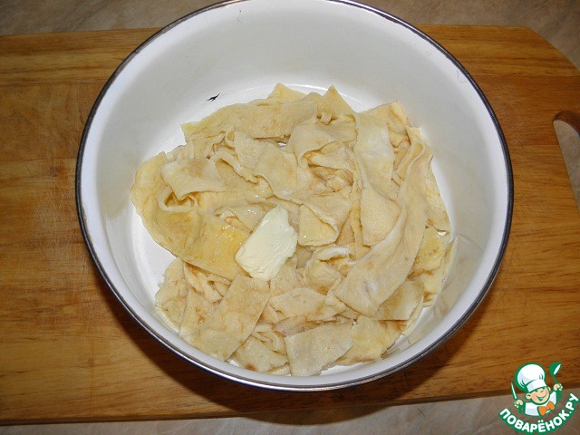 - Лапша (именно лапша, любая (мы в основном используем домашнюю, собственного приготовления)) — по вкусу