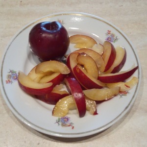Сливы вымыть, удалить косточки и нарезать не крупными дольками.