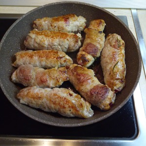 Жарить рулетики со всех сторон до румяности на огне чуть выше среднего.