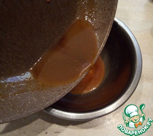 После тушения в сковороде должен остаться такой концентрированный "бульон". Слить его в миску, дать чуть остыть. -