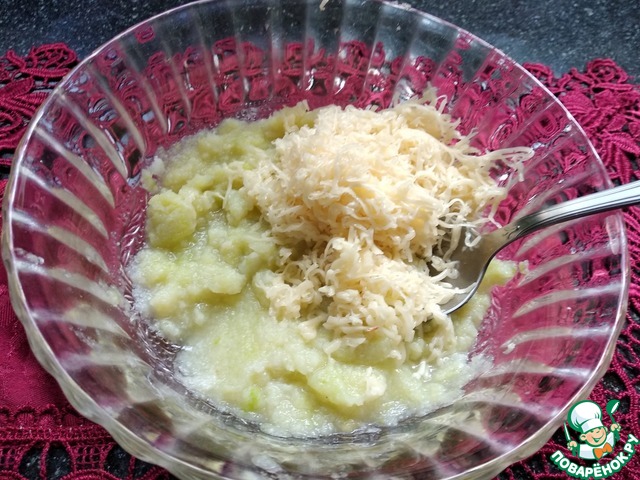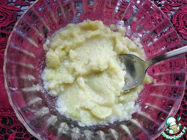 Капусту и кабачок откинуть на дуршлаг и протереть через сито.