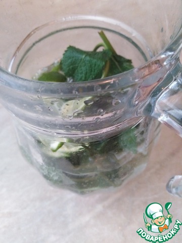 Добавить 3 веточки мяты и все перемешать.