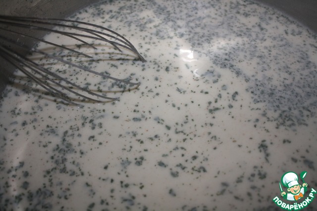 Солим и перчим по вкусу, добавляем петрушку и чеснок, мускатный орех так же по вкусу.